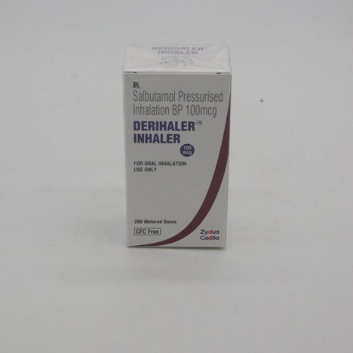 Derihaler Inhaler is a fast-acting bronchodilator used for the relief of asthma, bronchospasm, and other respiratory conditions involving reversible airway obstruction. Manufactured by Zydus Cadila, this inhaler contains Salbutamol Pressurised Inhalation BP 100mcg per dose, which works by relaxing the muscles in the airways, allowing for easier breathing during episodes of wheezing, chest tightness, or shortness of breath.